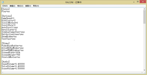 1、找到游戏根目录里面的Ra2.ini,有的计算机会不显示文件的“.ini”后缀。