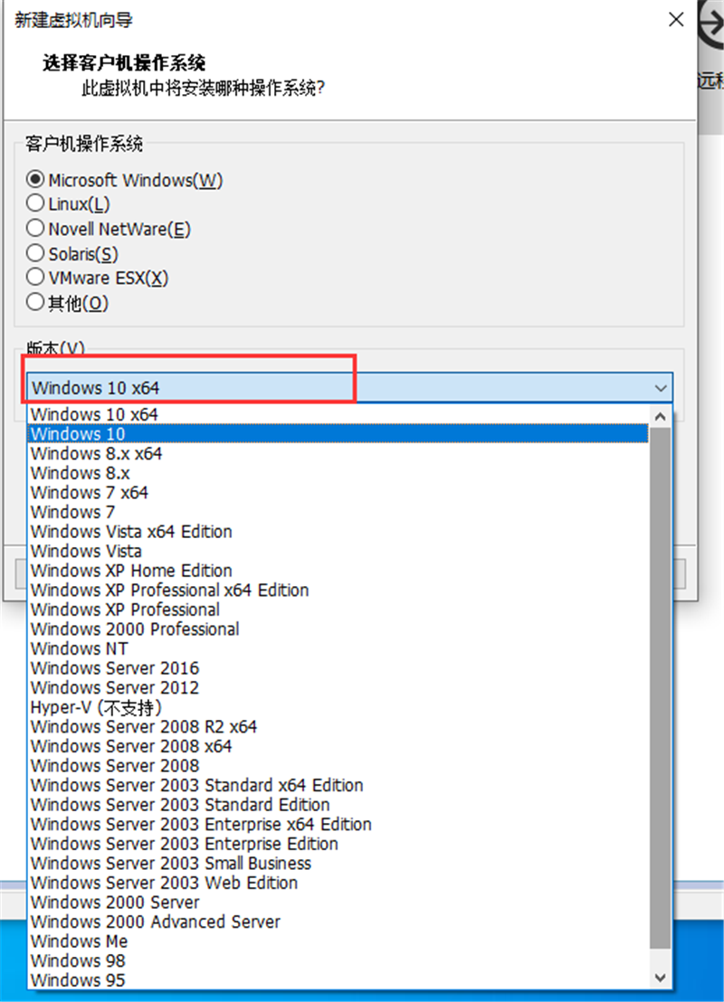4、选择客户机的操作系统,就是你想要在虚拟机中的系统,这里小编选择的是Win10 64位。