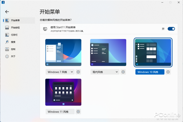 使用Start11,用户可以开始菜单恢复到Windows 7、Windows 10样式,还有一款现代风格的开始菜单。