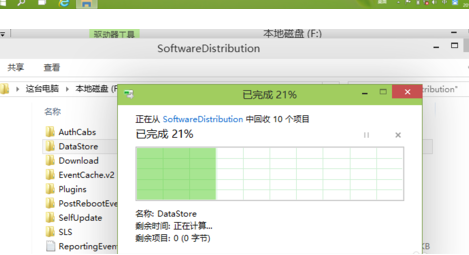 3. 进入c盘在搜索框输入:WindowsSoftwareDistribution,找到datastore文件夹,删除datastore里所有的文件。