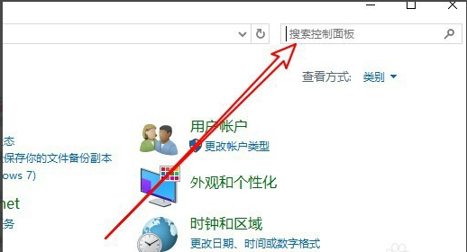 2、在打开的属性窗口中点击控制面板的菜单项,点击控制面板窗口右上角的“搜索”文本框。
