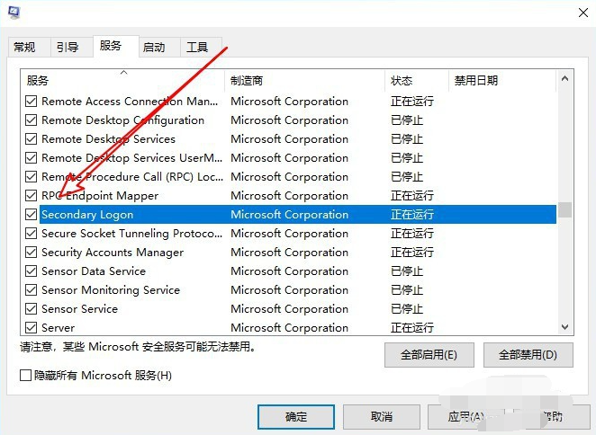 4、接下来在打开的服务窗口中找到Secondary Logon服务项。