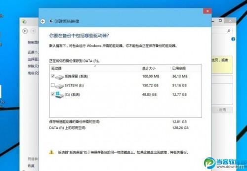 创建系统映像-在硬盘上-选择备份文件的保存分区