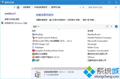 3、在“程序和功能面板”上,点击左侧的“启用或关闭Windows功能”链接;