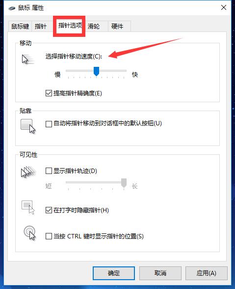6、在页面上方,找到【指针选项】,在【选择指针移动速度】中进行快慢的调整。