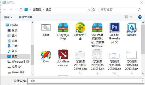 把文件名命名为1.bat格式,保存类型为所以文件。