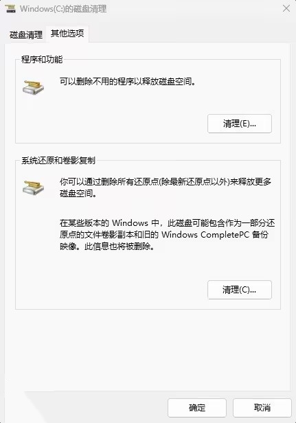 该工具的高级选项中还包含删除系统还原点与卷影副本的功能,但微软不建议用户随意操作,除非有明确的特殊需求。