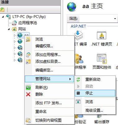(如果是删除了那几个网站再从头开始的,请跳到下面的“上面还是配置好IIS环境,下面我开始配置ASP.NET的环境吧!”)否则请点击”是“,然后右击其它网站,点击“管理网站”,再击”停止“,再右击你刚才添加的网站,像前面一样,点击”管理网站“,再点”启动“: