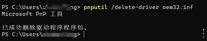 5、删除驱动:pnputil /delete-driver 驱动公布名字。