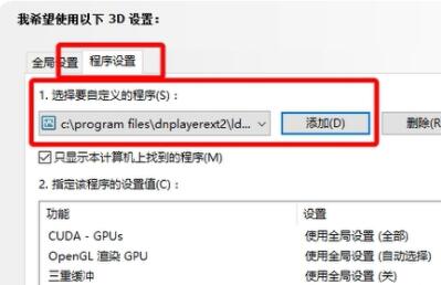 7、在“程序设置”下方添加雷电模拟器,然后使用最佳性能即可。