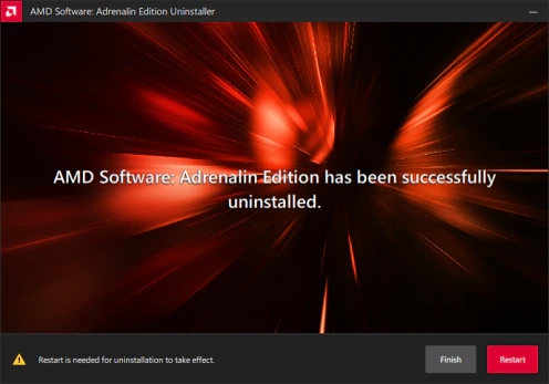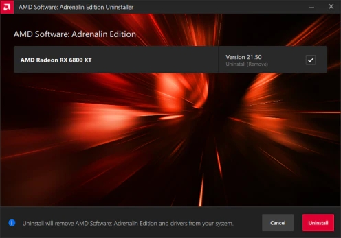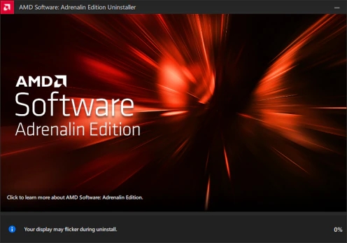 卸载过程将开始删除 AMD 软件包组件。在此期间显示器间歇性地变黑是正常的。