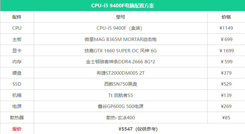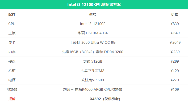 注:由于电脑硬件更新换代步伐较快,如果有产品停产请使用新产品替代。另外,硬件价格会随着行情变化会有浮动,请参考当天价格为准,所有组装电脑配置清单价格仅提供参考。