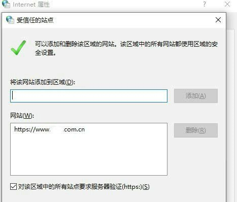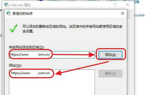 6、输入你要添加的站点网址,点击添加按钮,如下图所示。
