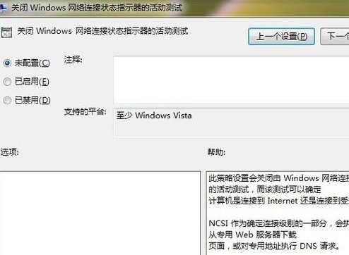 然后依次展开“计算机配置-管理模板-系统-Internet 通信管理”,在“Internet 通信设置”在列表中找到“关闭Windows网络连接状态指示器活动测试”并双击打开。