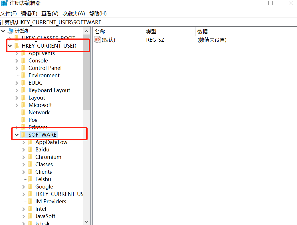 3、然后在【HKEY_CURRENT_USER】目录下找到【software】。