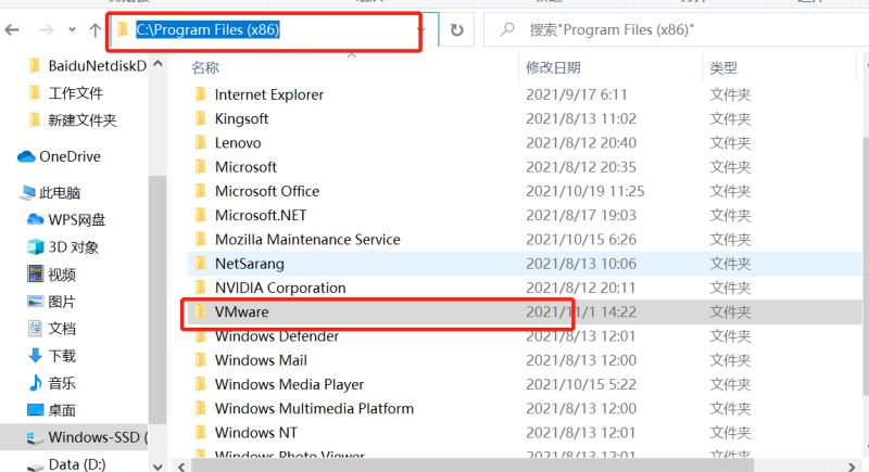 5、打开【我的电脑】,在C盘的Program Files(x86)文件下找到VMwar文件,然后删除。