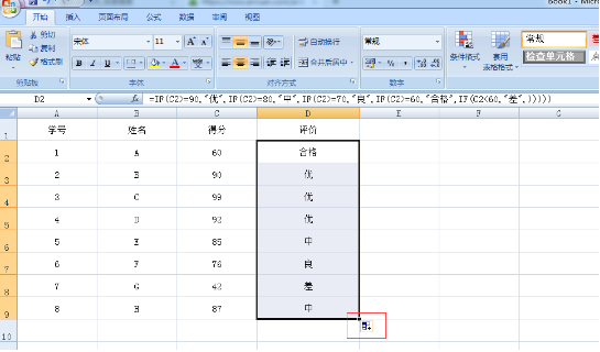 3、多个条件需要注意的就是括号的问题,根据以上假设的规则可以设定函数为 =IF(C2>=90,“优”,IF(C2>=80,“中”,IF(C2>=70,“良”,IF(C2>=60,“合格”,IF(C2<60,“差”,)))))。