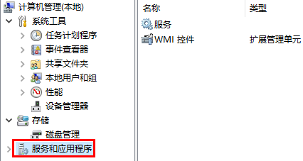 2、点击左侧的“服务和应用程序”。