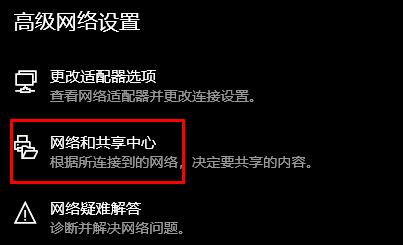 3、再点击右侧的“网络和共享中心”。