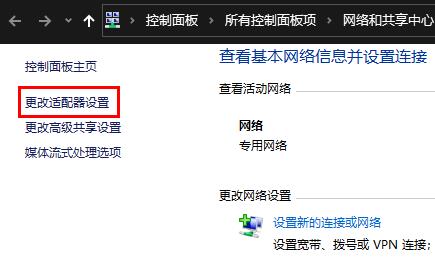 4、之后点击左侧的“更改适配器设置”。