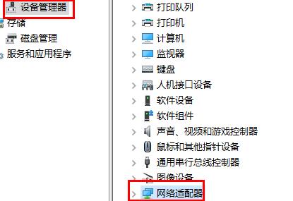 2、之后去点击左侧的“设备管理器”,在打开“网络适配器”的下拉。