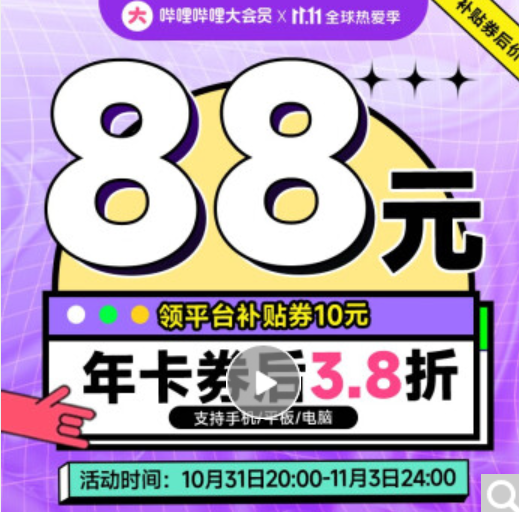 那么接下来就赶紧来一起看一看,哔哩哔哩大会员在双11都有哪些优惠活动吧。