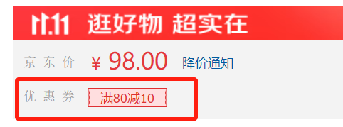 3、在购买页面价格的正下方可以找到10元优惠卷的领取按钮,我们点击【满80减10】。