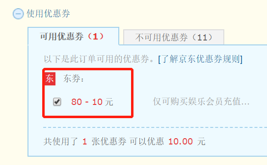 5、我们将【哔哩哔哩年度会员】产品加入购物车并进入下订单界面,在输入您哔哩哔哩用户手机号后(很重要,一定要再三确认,下订单后会依据此手机号直接进行自动充值),点击下方的【使用优惠卷】,可以找到我们刚刚领取的优惠卷。