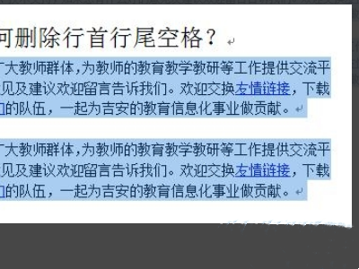 4、这时看到文字段前段后的空格消失了。