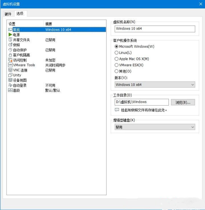 1、编辑虚拟机设置,切换到【选项】选项卡。