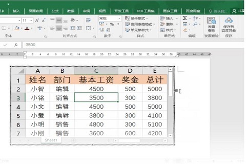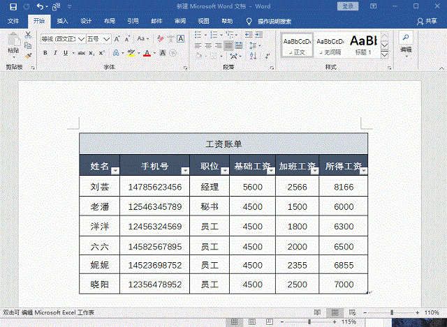 2、表格在word中是以图片形式展现,如果想要修改数据就要双击表格,接着会跳到excel窗口,即可进行修改,修改完成后点击空白处就能返回word页面。