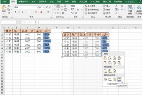 4、复制表格,在空白区域单击鼠标右键,“选择性粘贴”-“链接的图片”,这时表格就被粘贴成可以更新内容的图片。
