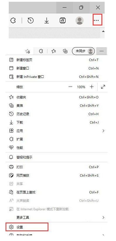 1、第一步在软件页面中,点击右上角的“...”图标,然后在下拉选项菜单中选择“设置”。
