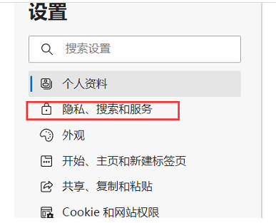 2、第二步在新界面中,点击“隐私、搜索和服务”。