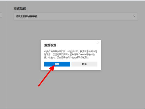 在重置设置界面,点击将设置还原为其默认值。