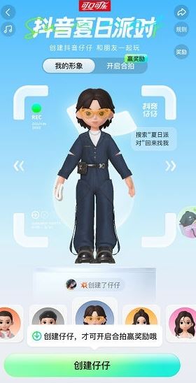 目前,用户进入抖音消息”页面即可开启抖音仔仔”,该功能提供了打造3D虚拟人物形象的玩法,拥有捏脸、服饰,以及心情三大模块。而通过自定义的捏脸和服饰搭配,用户即可定制专属虚拟形象,同时还能设置包括听歌、干饭、运动打卡、玩游戏等即时状态。