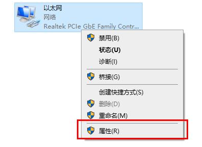 3、然后在窗口中选中“以太网”右击选择“属性”打开。