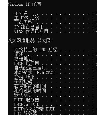 2、然后在命令提示符窗口中输入“ipconfig -all”,回车执行命令就可以看到了。