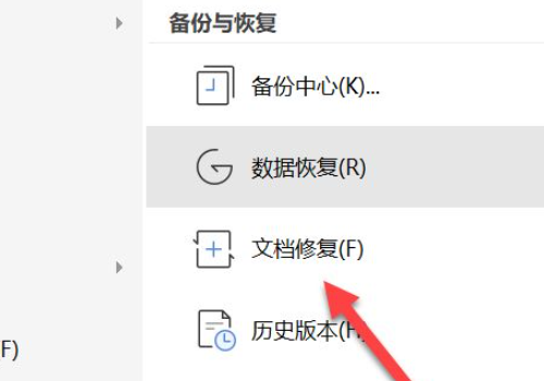 在备份与恢复选项下点击文档修复即可。