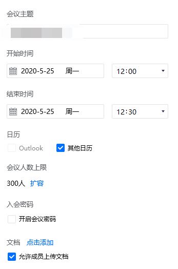 填写设置会议时间和会议密码。