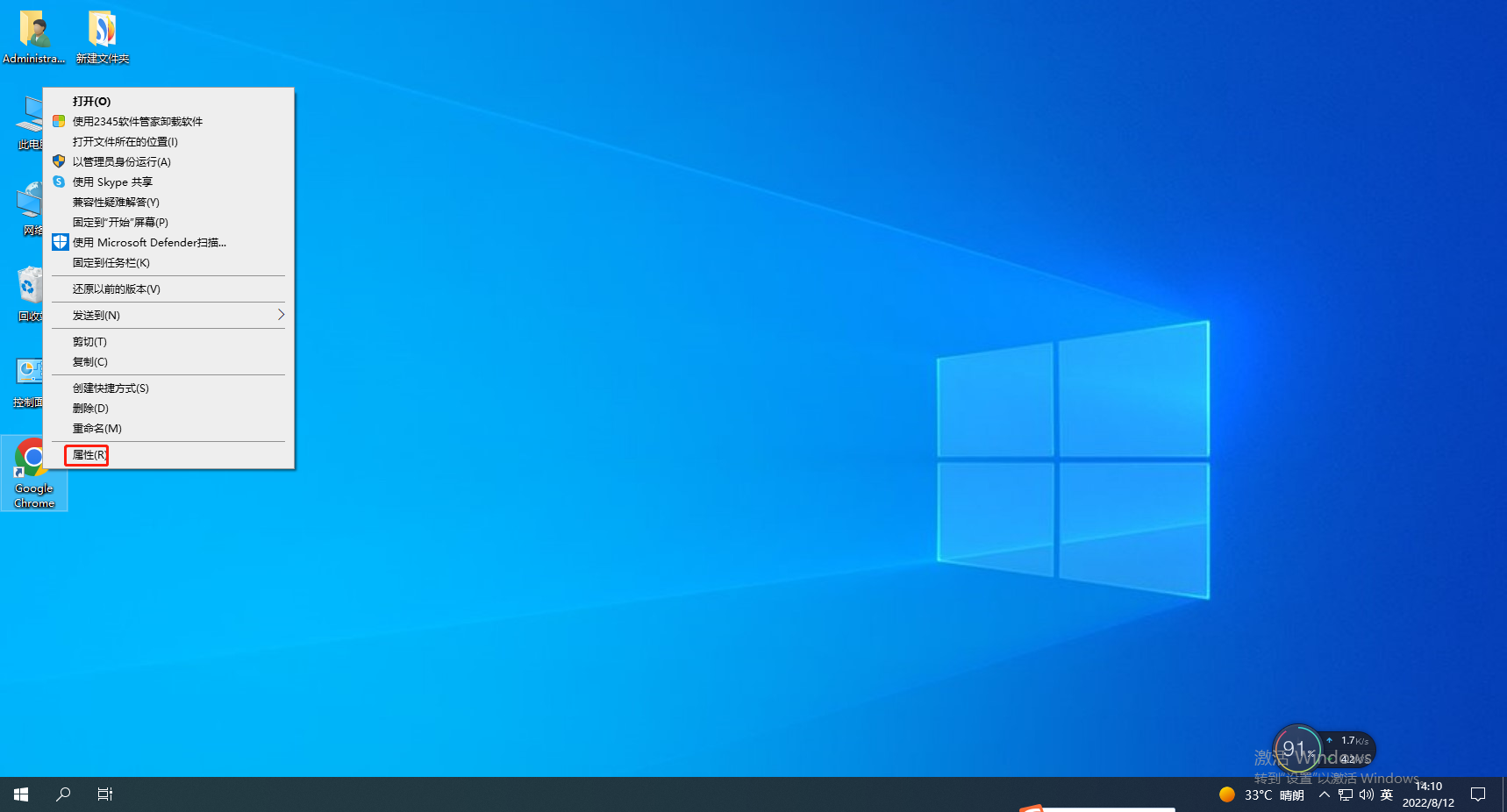3、在重启浏览器后,如果问题依然存在,右键单击chrome快捷方式点击属性。