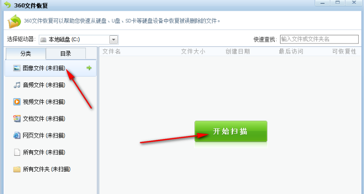 3、打开之后,点击页面上的【本地磁盘C】的下拉按钮,可以选择需要扫描的磁盘,如图所示。