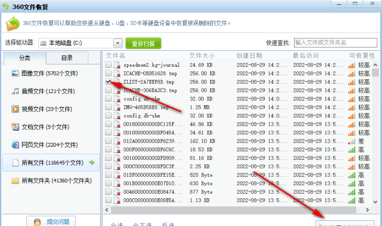 5、扫描后,可以根据自己的需要进行勾选需要恢复的文件,可以根据文件类型来找到需要,如图所示。