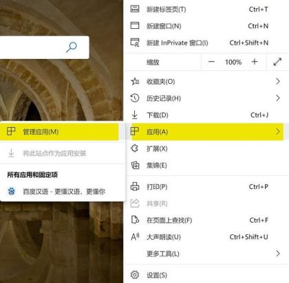 如果想卸载这个站点伪装应用,同样需要在edge浏览器里面操作。