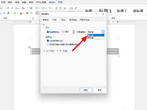 在表格属性的行选项下,行距值设为最小值。