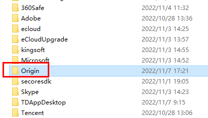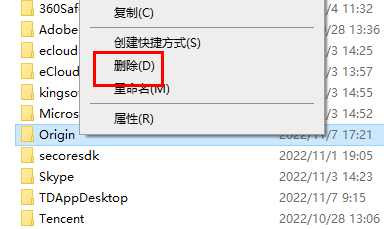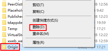 4、在返回appdata文件夹,进入local,这里也有origin文件夹,将其文件删除。