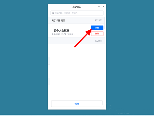 2、在历史会议界面,点击“详情”。