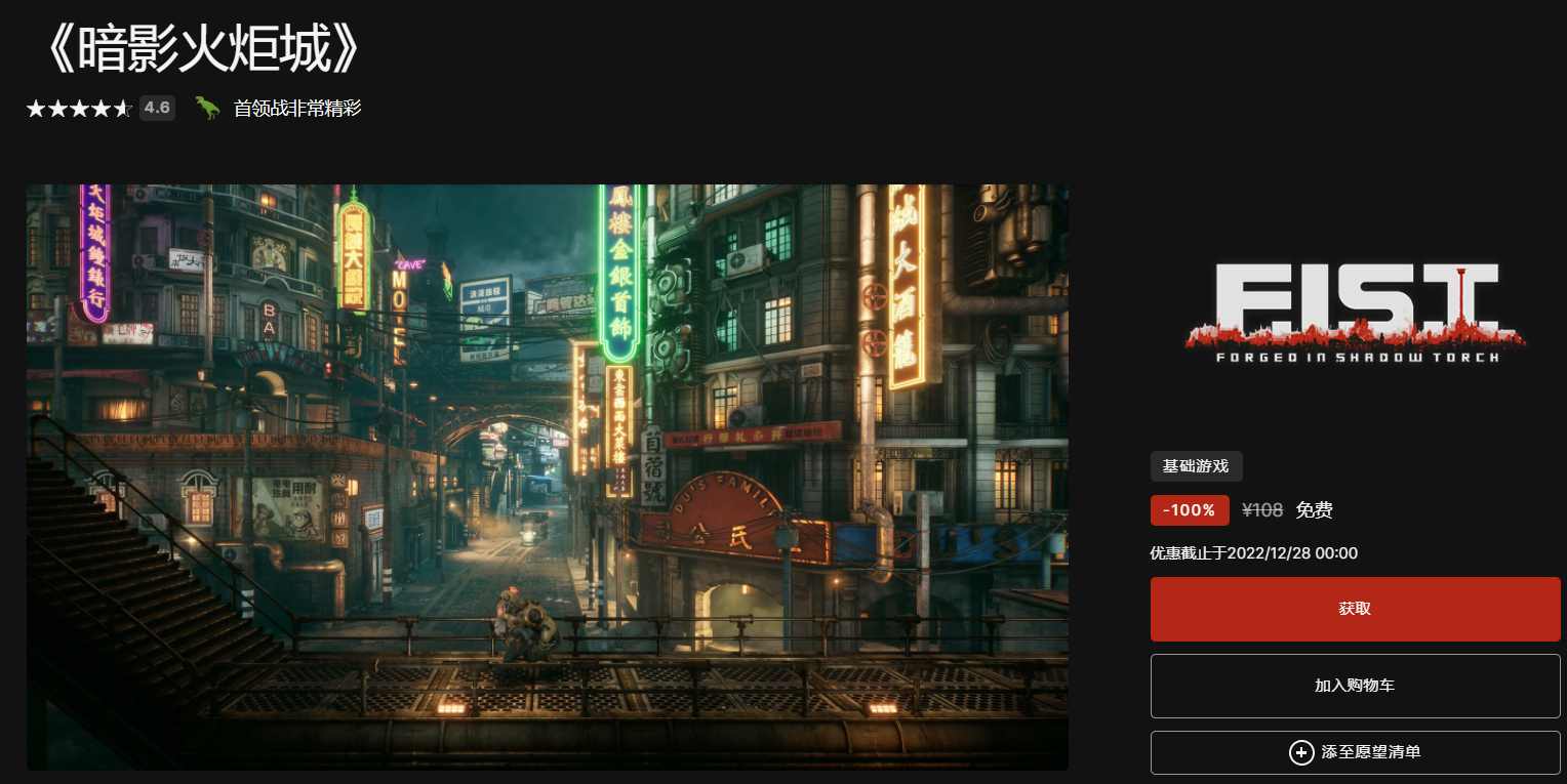 答:epic2022年12月27日的免费游戏是《暗影火炬城》。