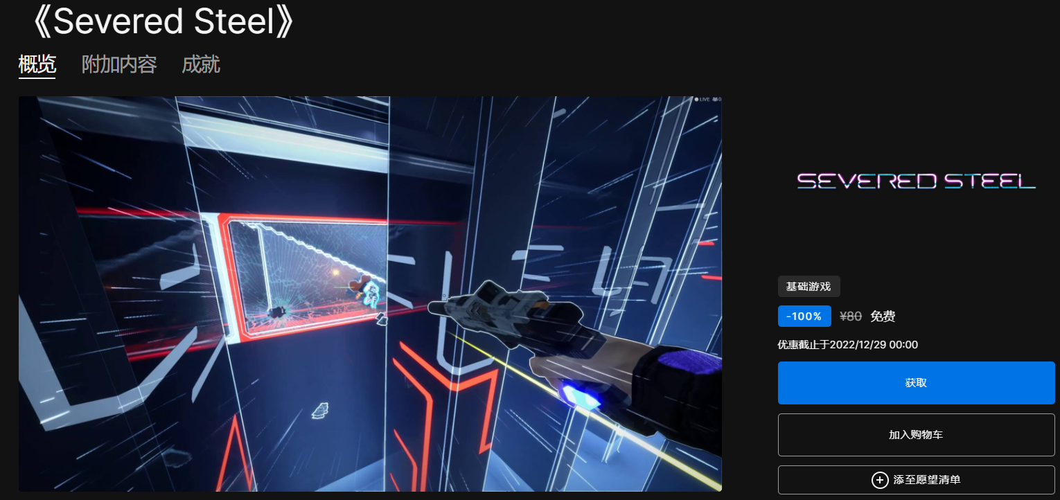 答:epic2022年12月28日的免费游戏是《Severed Steel》。