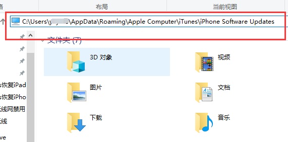 2、然后进入“C:\Users\用户名\AppData\Roaming\Apple Computer\iTunes\iPhone Software Updates”位置。